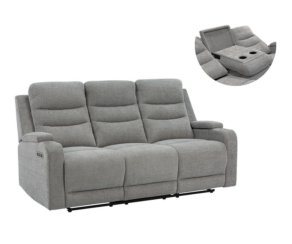 Experience the perfect blend of comfort and style with this Power Recliner Sofa Set, crafted in premium grey fabric upholstery. Built with high-density, heavy foam cushions, it ensures long-lasting durability and exceptional support for everyday use. Designed for ultimate relaxation, the sofa features generously padded arms, a high thick back, and a convenient drop-down tray with cup holders, making it ideal for lounging or entertaining. The high-grade fabric material adds a touch of elegance, while the smooth power reclining mechanism offers effortless comfort, making this sofa set a stylish and functional centerpiece for any living space.