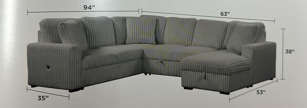 Upgrade your living space with this versatile sectional sofa, designed to deliver both comfort and functionality. Upholstered in soft corduroy fabric, it offers a cozy, inviting feel while adding a touch of modern style to your décor. The spacious L-shaped design provides plenty of seating for family and guests, and it easily converts into a comfortable bed for overnight stays or extra relaxation. For added convenience, the chaise features a built-in storage compartment, perfect for keeping blankets, pillows, and other essentials neatly tucked away and has USB ports. Stylish, practical, and space-saving, this sectional is a smart choice for any home.