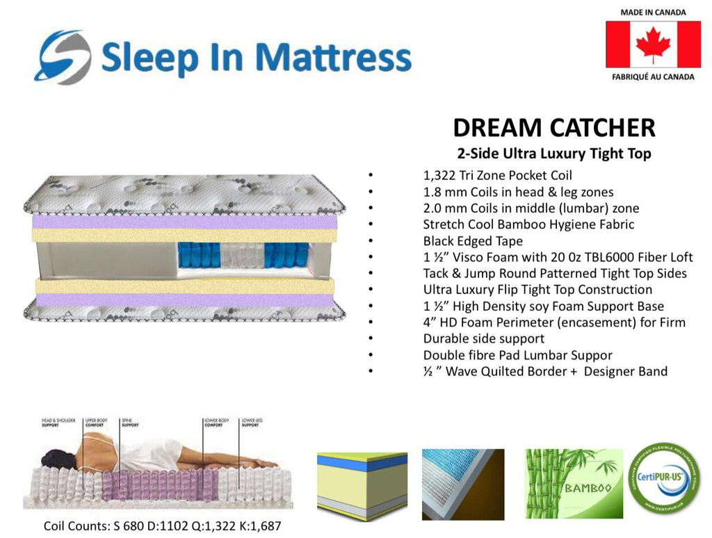 Experience tailored support and luxurious comfort with our 1,322 Tri-Zone Pocket Coil Flip Tight Top Mattress, engineered for optimal spinal alignment and restorative sleep. Featuring 1.8 mm coils in the head and leg zones and 2.0 mm coils in the lumbar zone, this mattress provides precise zoned support, while the 4” high-density foam perimeter encasement ensures firm, durable side support. The ultra-luxury flip tight top construction is layered with 1½” visco foam and 20 oz TBL6000 fiber loft, atop a 1½” high-density soy foam support base, complemented by a double fiber pad for lumbar support. Wrapped in stretch cool bamboo hygiene fabric with black edged tape, the mattress features tack-and-jump round patterned tight top sides and a ½” wave quilted border with designer band, combining breathability, style, and exceptional comfort for a truly restful sleep experience.